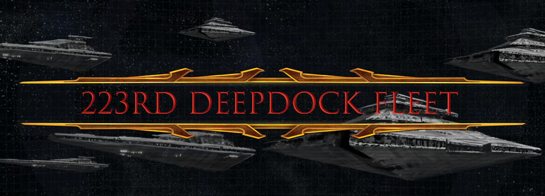 The 223rd Deepdock Fleet is a formation of the Imperial Navy commanded by a Fleet Admiral and a Sith Overseer. Deepdock fleets are deployed behind superiority, assault, expeditionary, or bombard fleets to act as a mobile logistics, supply, maintenance, and repair hub. The 223rd Deepdock Fleet and it's associated escort forces protect two large deepdock complexes, immense structures that act as floating shipyards dedicated to repairing and modifying Imperial starships, complete with many repair bays and a hyperdrive system. The 223rd Deepdock Fleet operates out of the Serenno system in the D'Astan sector, supported by the Gauntlet Shipyards.The 223rd Deepdock fleet is organised into a force escort, two deepdock complexes, an engineering corps, two force technical services, and a force support.